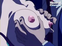 Comely hentai minx showing her large hooters and getting