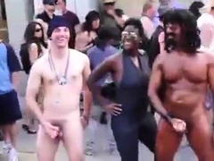 exhibe dans la rue nue sous son manteau